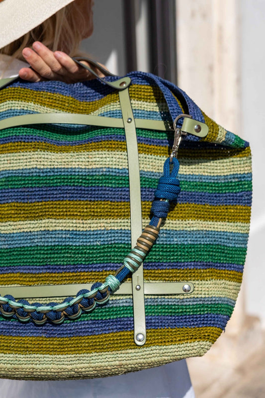 Bag - CANDIDE TD Blu Raffia Bag With Multicolor Cotton Strap