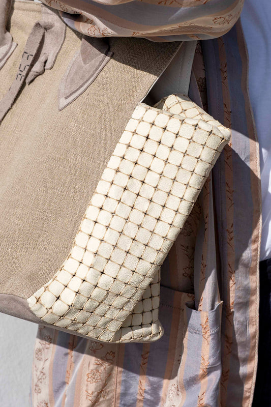 Bag - Medium Bag Linen And Leather Silver Kaki