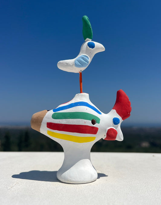 When I first arrived in Puglia 10 years ago, 1 bought a charming ceramic whistle call Cola Cola. I was immediately drawn to its vibrant primary colors and matte white finish - a true work of art! As I began to learn more about its origins, I uncovered its fascinating history and the ancient tradition that is still alive today surrounding this whistle, which comes from the town of