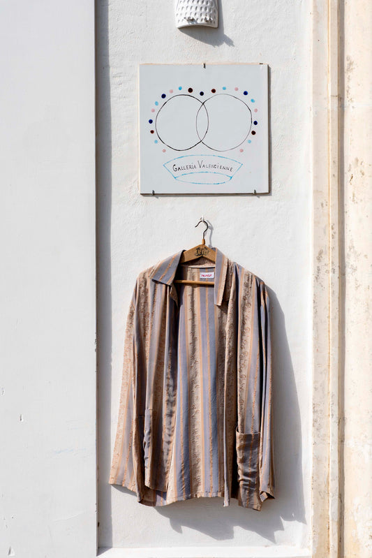 Shirt Men - Mao Collar Stripe White and cafe lemon embroidery