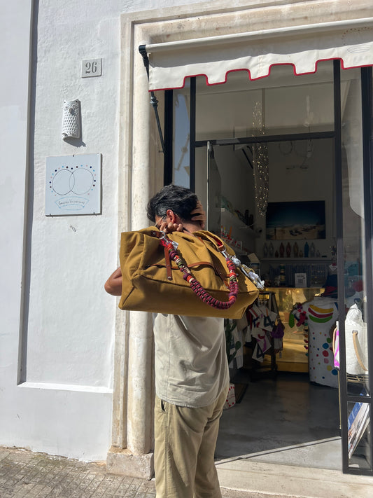 Bag Unisex - CANDIDE Tobacco Bag With Multicolor Cotton Strap