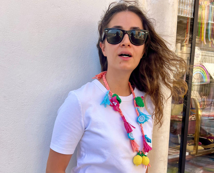 Necklace - Pink raffia necklace