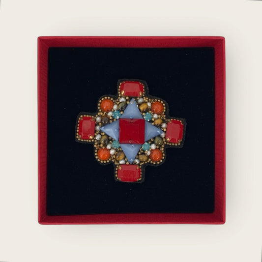 Brooch - Luxury ORTHODOX CROSS brooch Red & Blue
