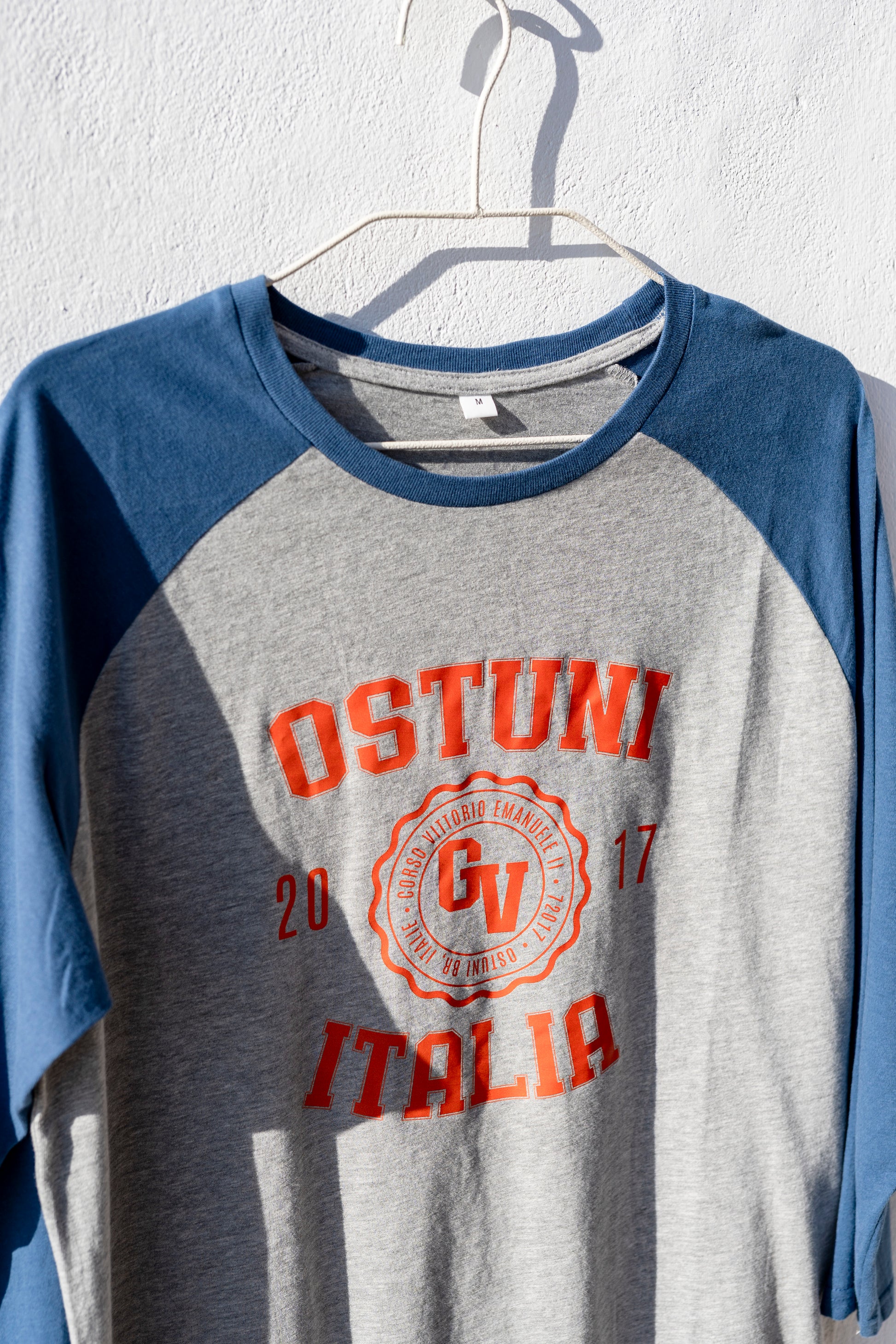 Join the Ostuni Team with our base-ball cool 3/4 sleeve bi-color t-shirt.
