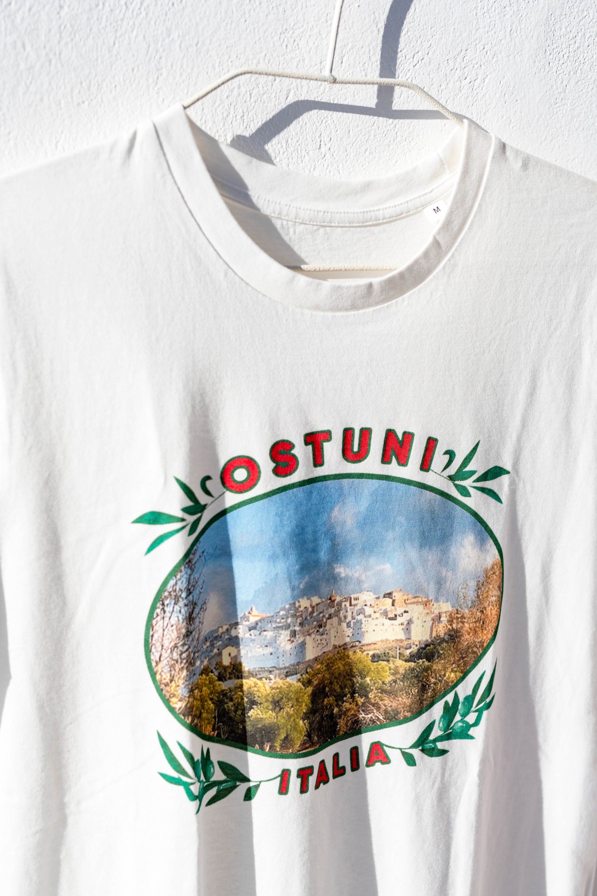 T-shirt - off-white with Ostuni photo in medallion Unisex