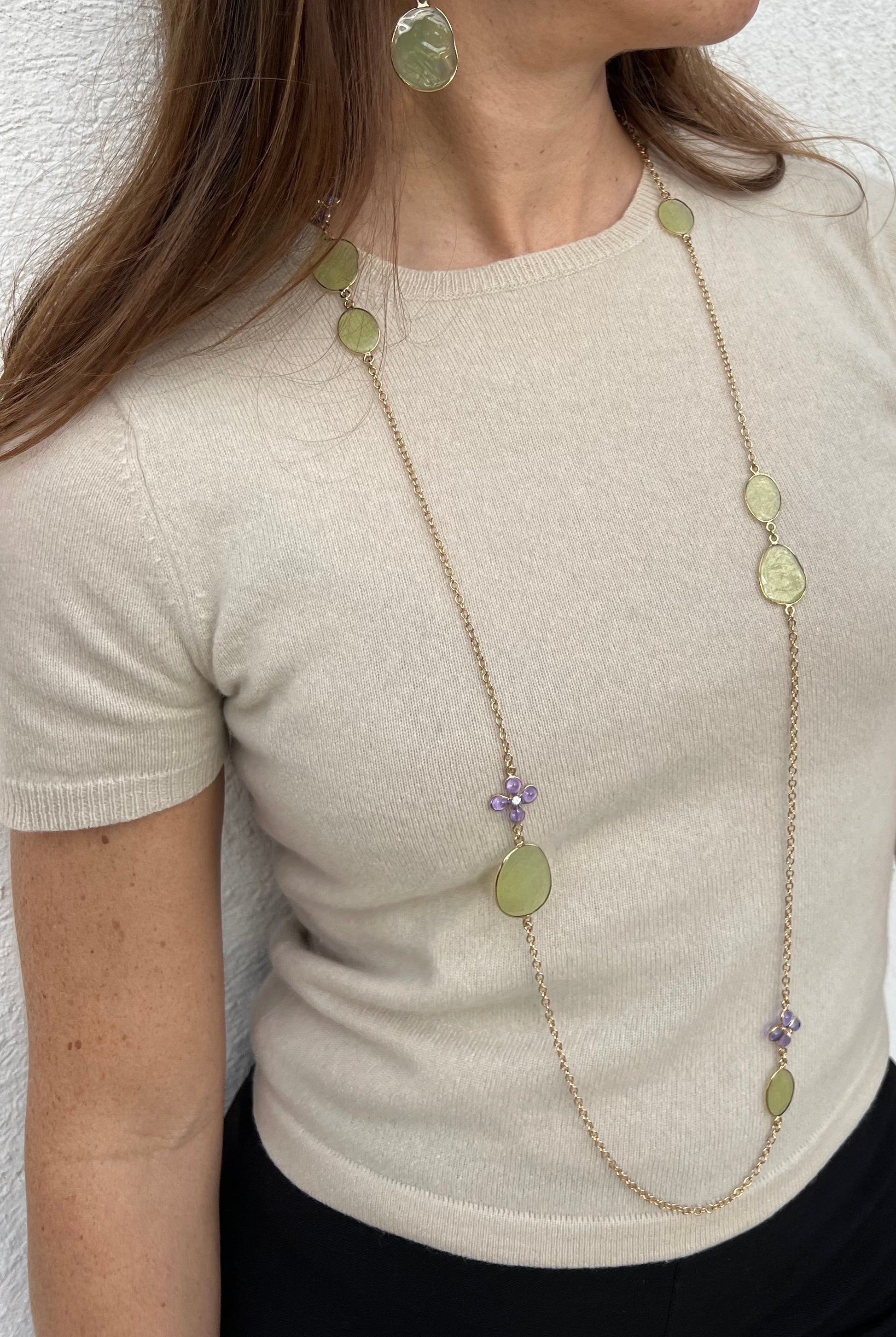 Chaque bijou est réalisé avec une technique d'émaillage très plat, étonnamment léger, laissant passer la lumière à travers la pâte de verre opale ou transparente.