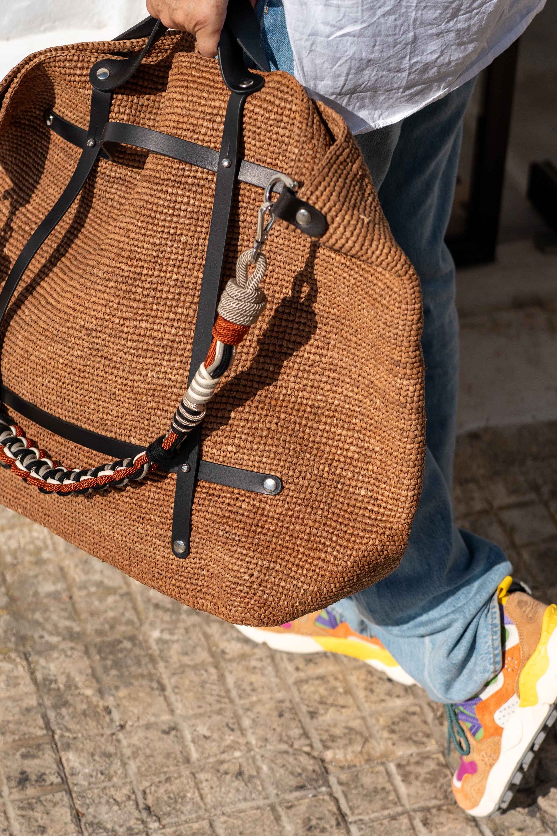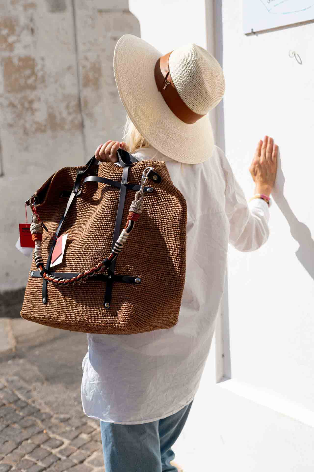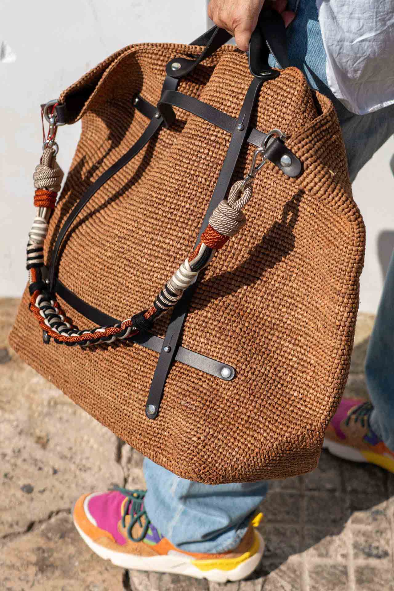 Le sac CANDIDE en raphia est fabriqué à la main en Belgique. Souple, il vous permet de voyager facilement tout en restant décontracté.