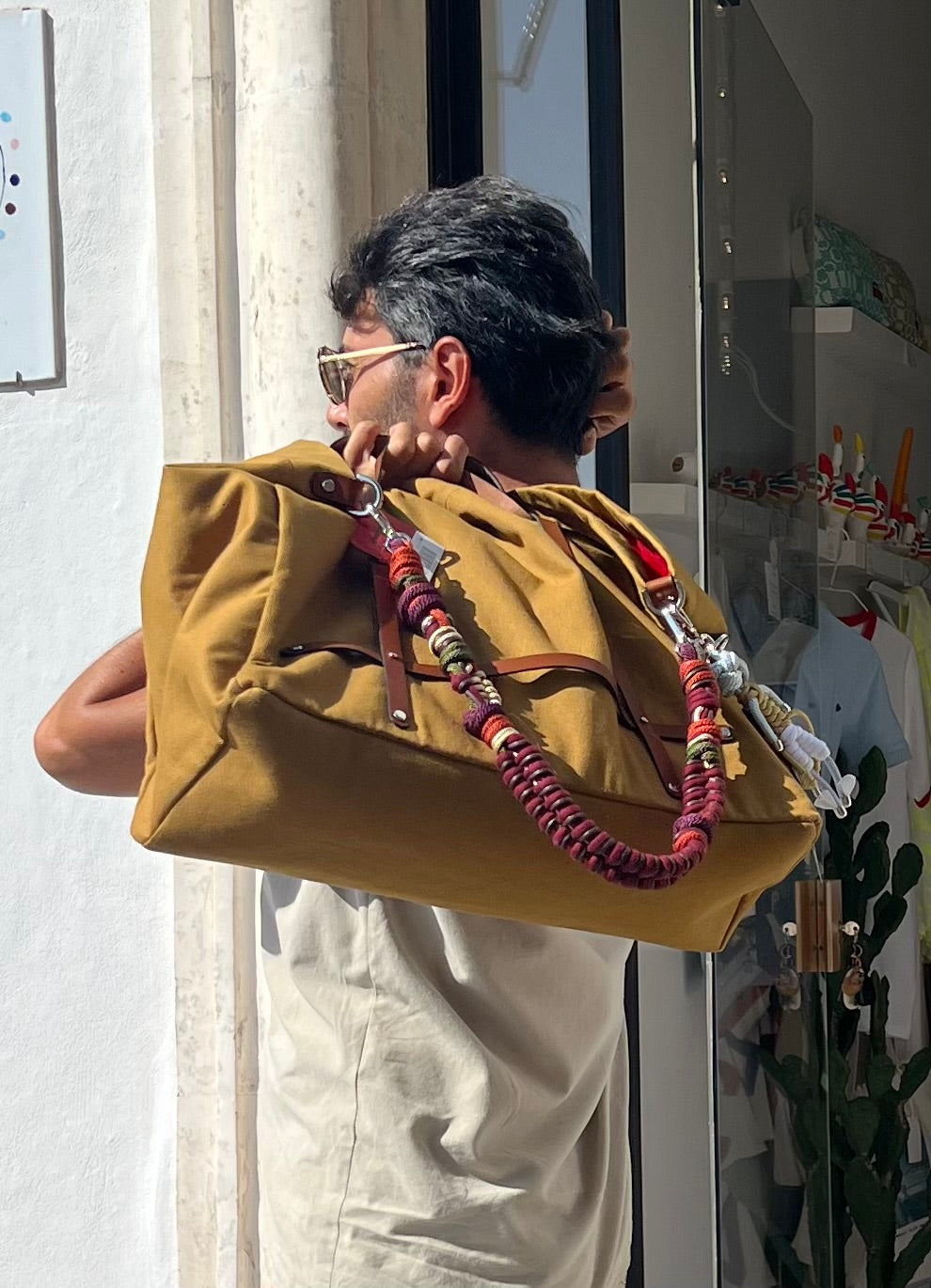 Le sac en coton jaune CANDIDE est fabriqué à la main en Inde. Souple, il vous permet de voyager facilement tout en restant décontracté.