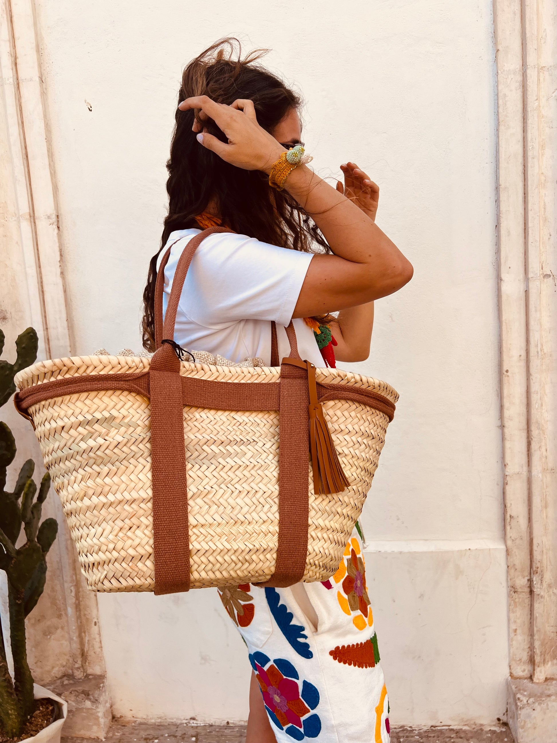 Sac - CRETA Grand Panier Palmier Naturel/Tabac