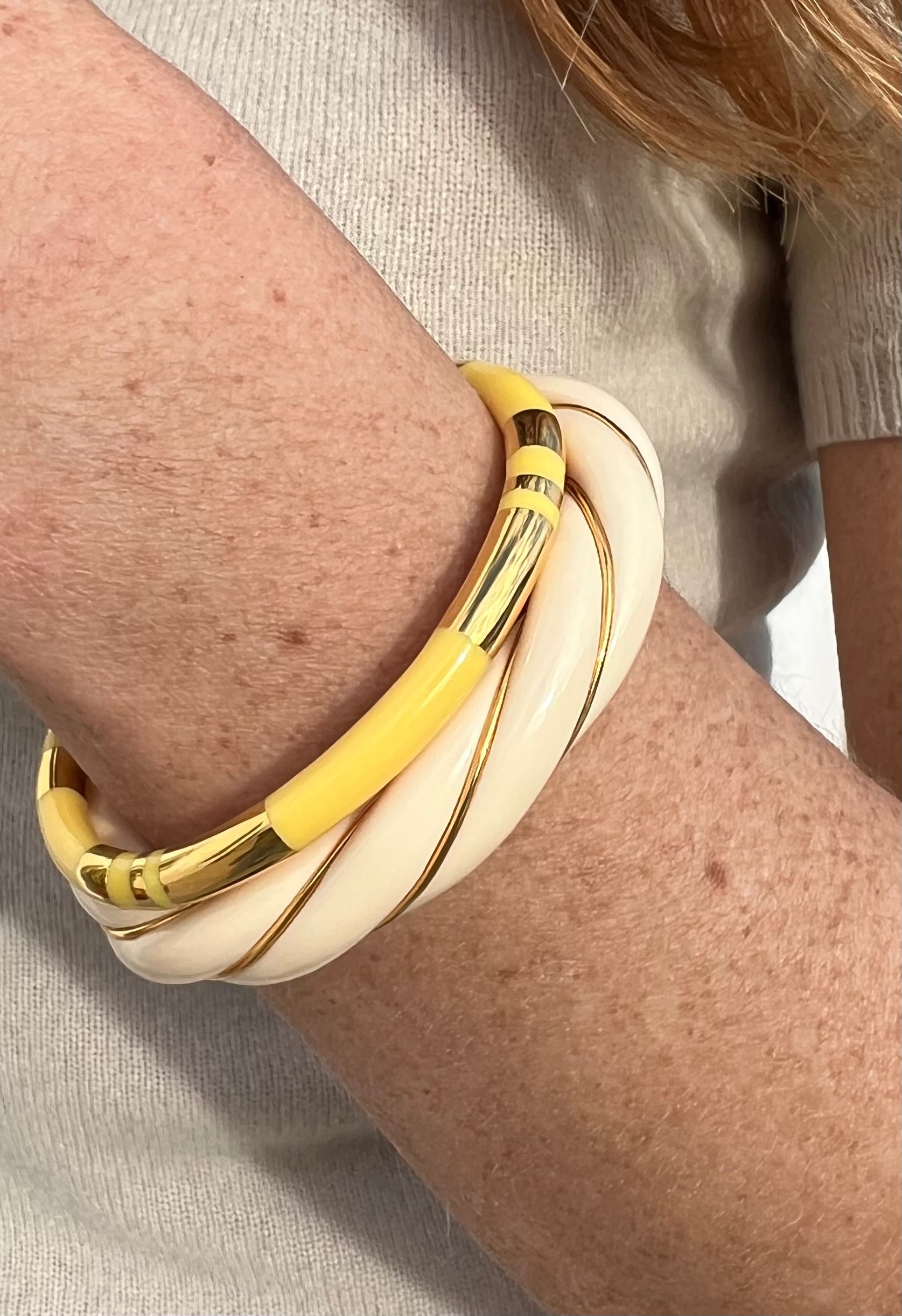 Bracelet rayé Positano plaqué or jaune 750/1000 en résine jaune.