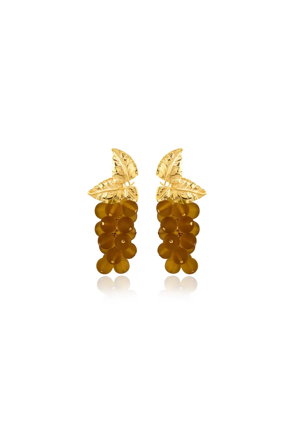 BRONZE PLAQUÉ OR 24K 1 MICRON, PIERRES DE JADE JAUNE AMBRE, FERMETURE À PIN, POIDS : 30 GR