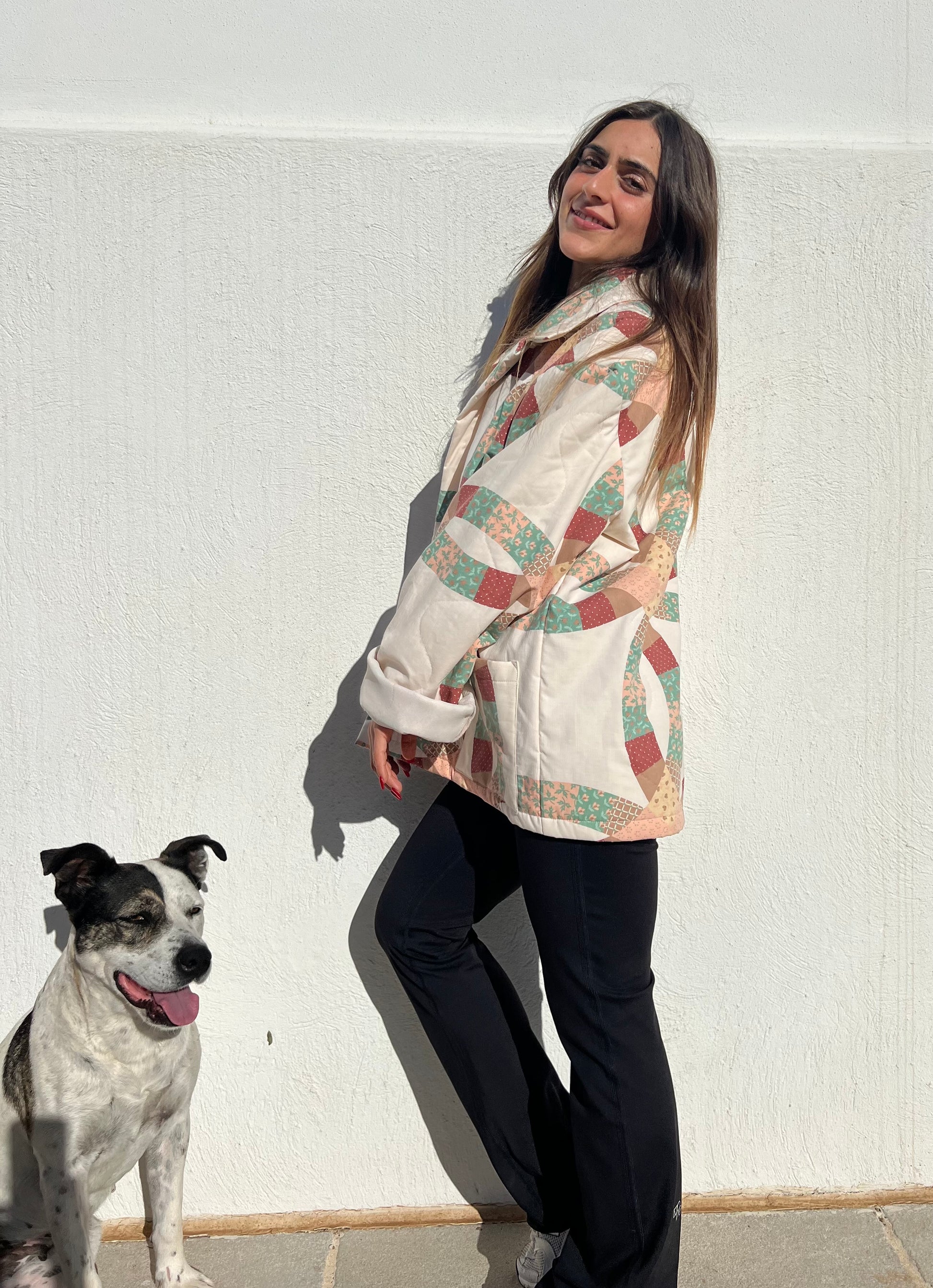 Veste courte matelassée en patchwork de coton.