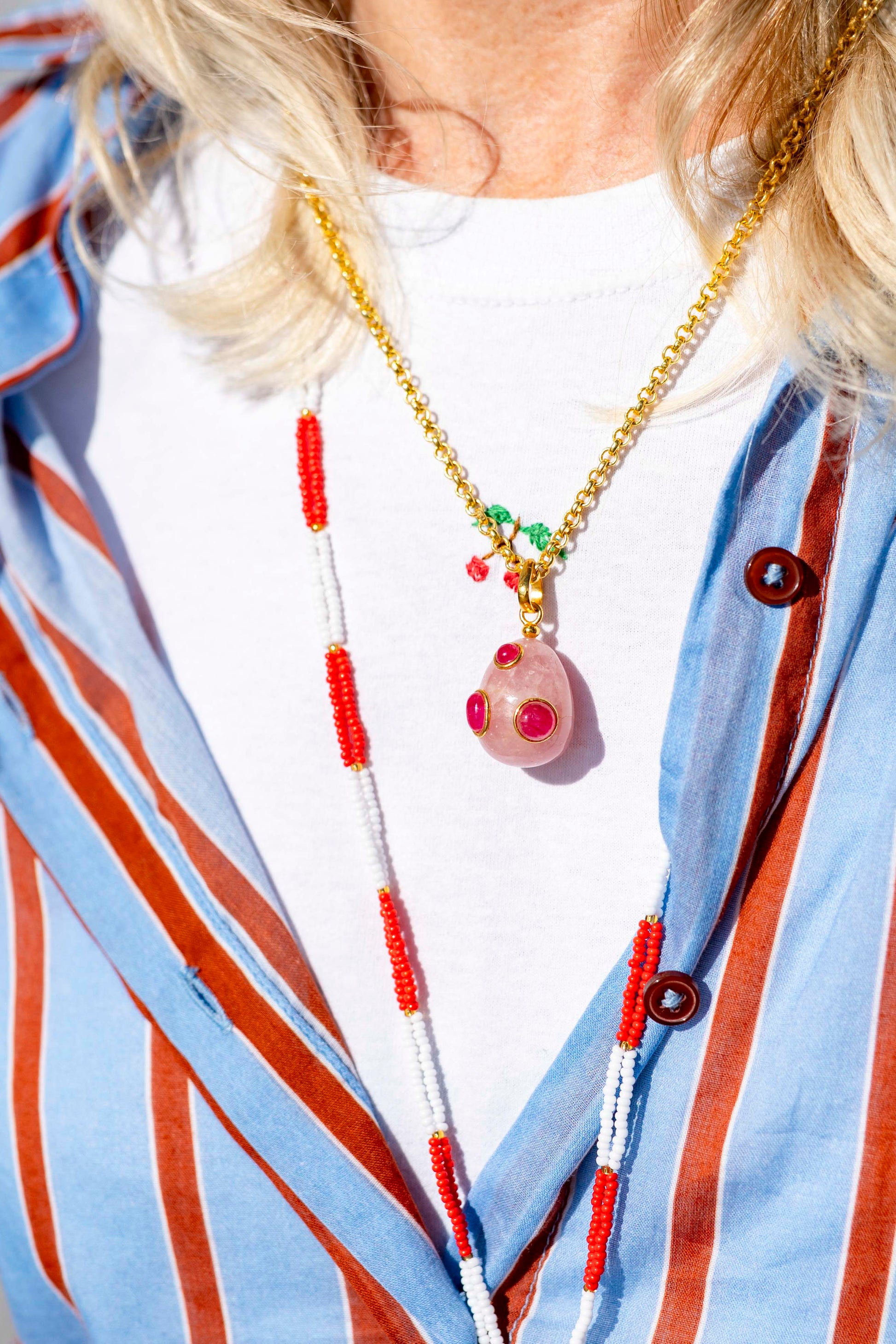 Collier - Oeuf en quartz rose avec turquoise, quartz rose