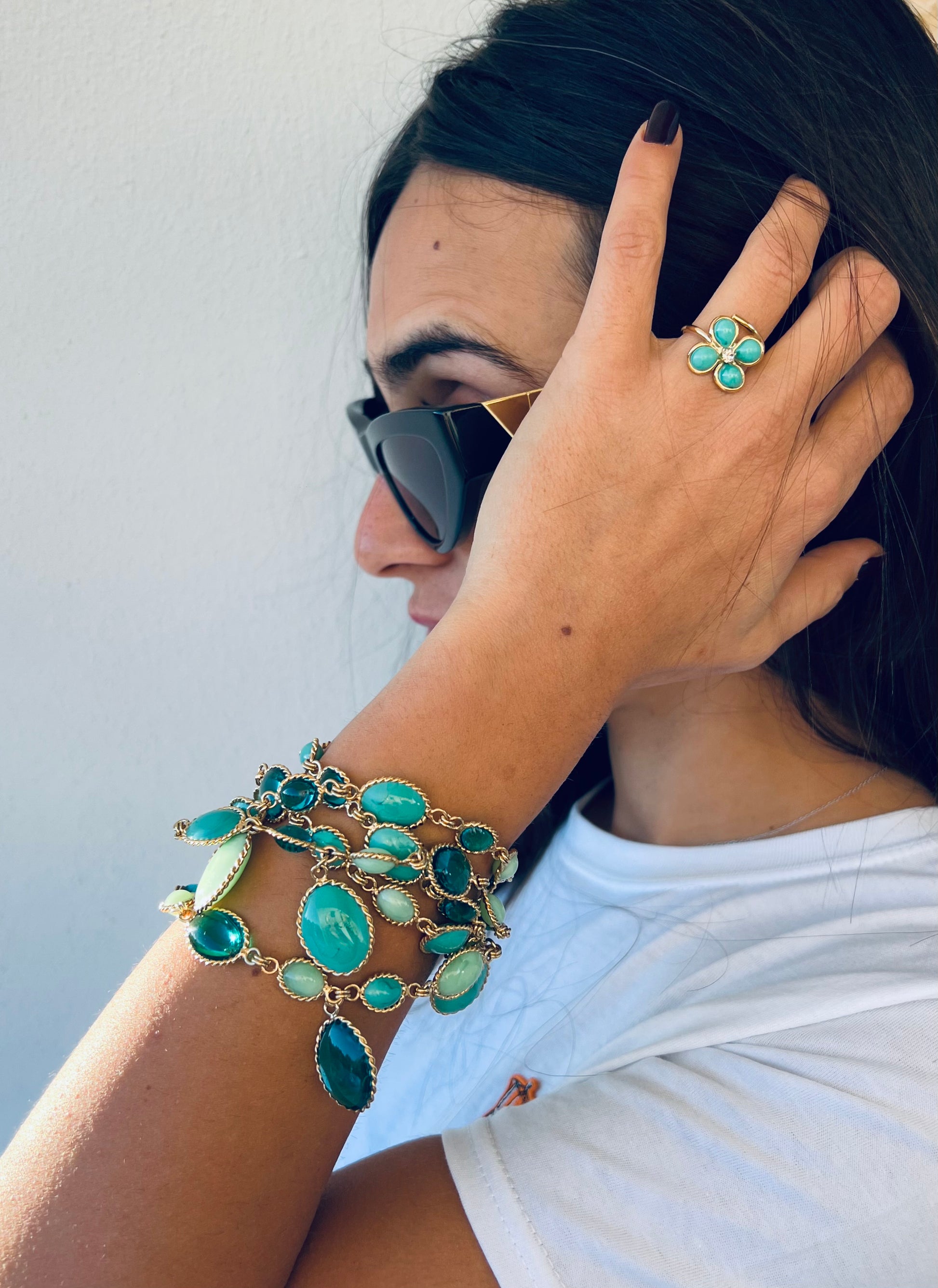 Chaque bijou de la Maison Augustine est unique, fruit du savoir-faire familial d’exception dans l’art de la pâte de verre. Cette technique artisanale donne naissance à des pièces aux nuances légères telles que des variations de couleurs et de petites bulles d’air, conférant à chaque création le charme précieux du fait main.