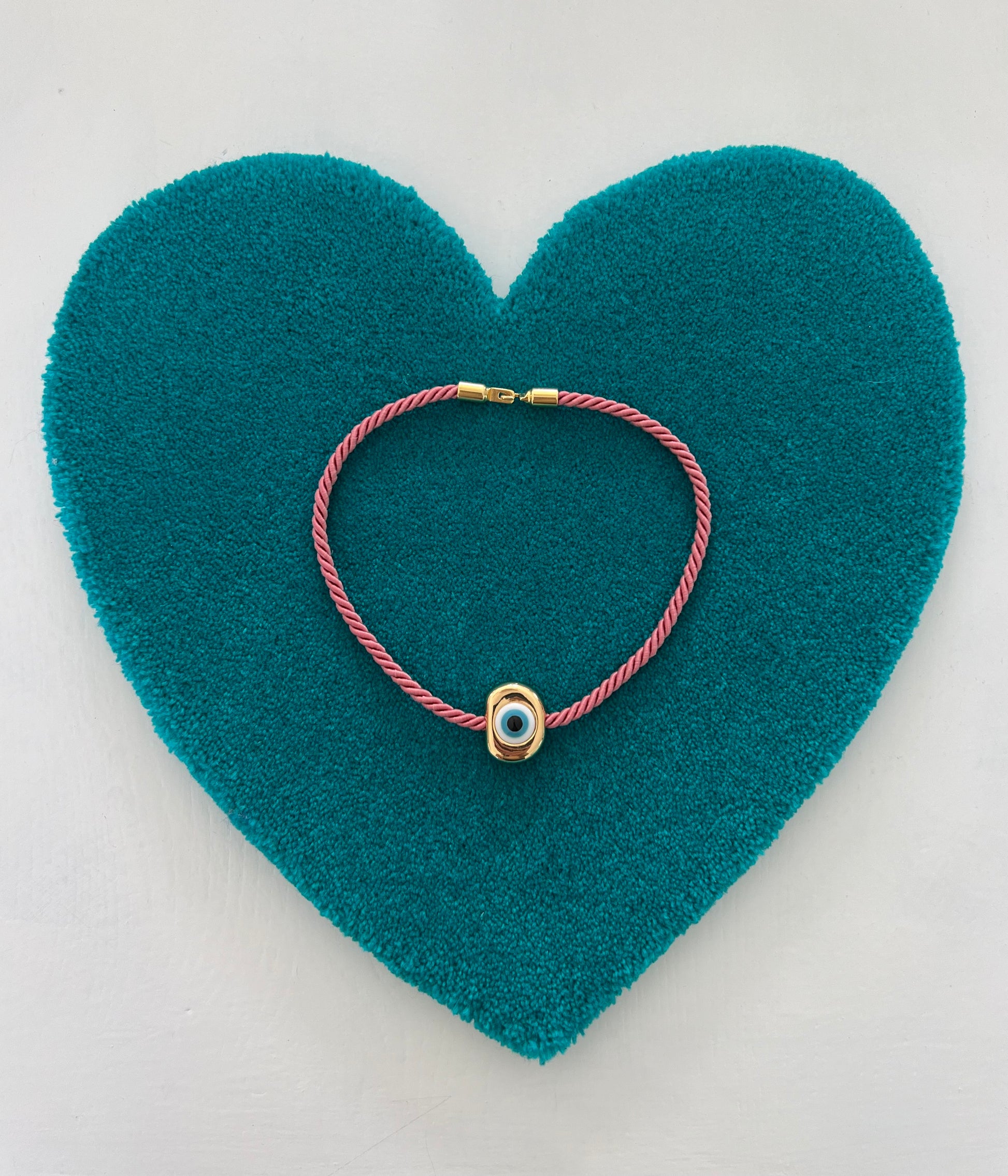 -Corde en satin rose avec breloque œil et fermoir plaqué or 24K 3N.