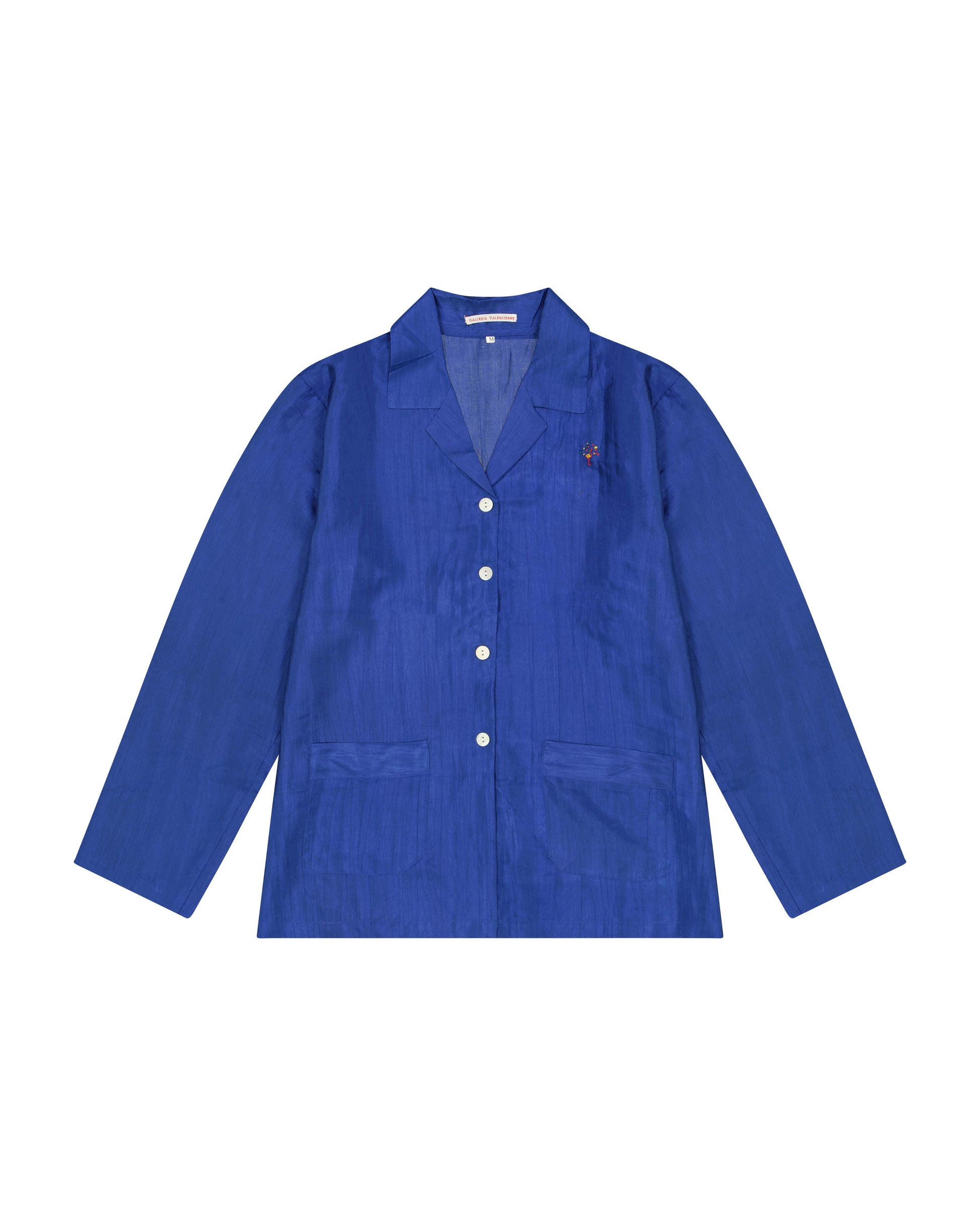 Pyjamas Femme - Pyjama en soie Bleu nuit brodé à la main