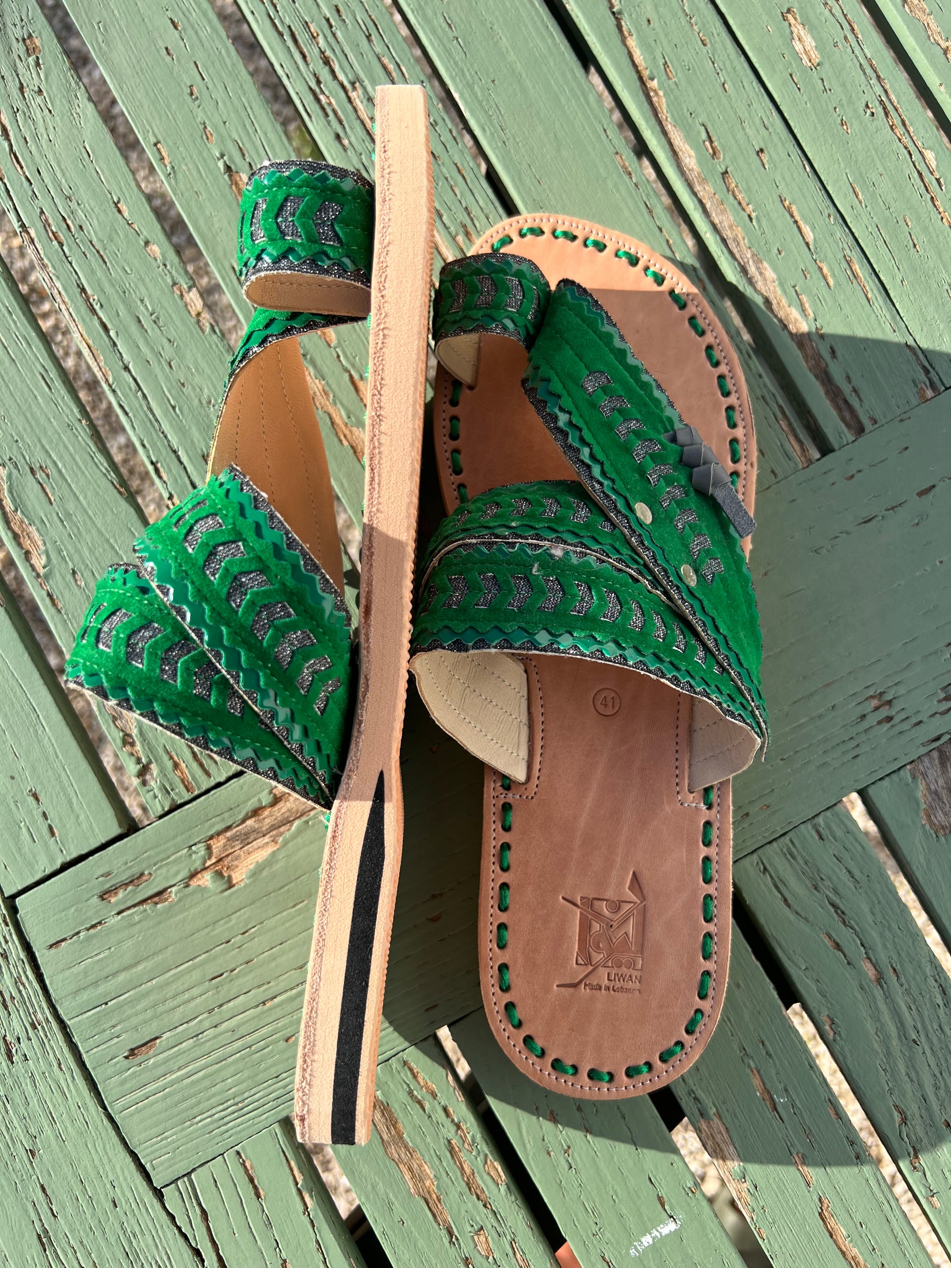 Chaussures Femme - Sandales Liwan Brillantes Vert Jinane