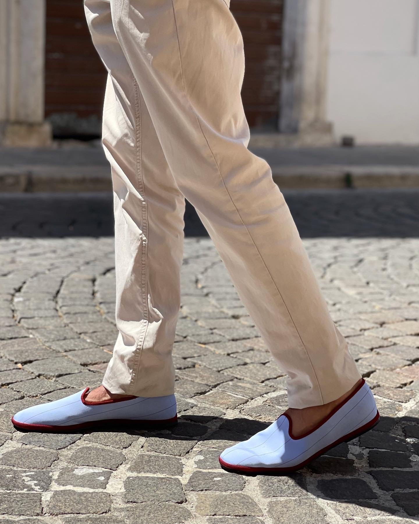 Le mariage d'un tissu couture haut de gamme avec ces semelles de pneus recyclées ajoute une touche inattendue à la mode masculine.