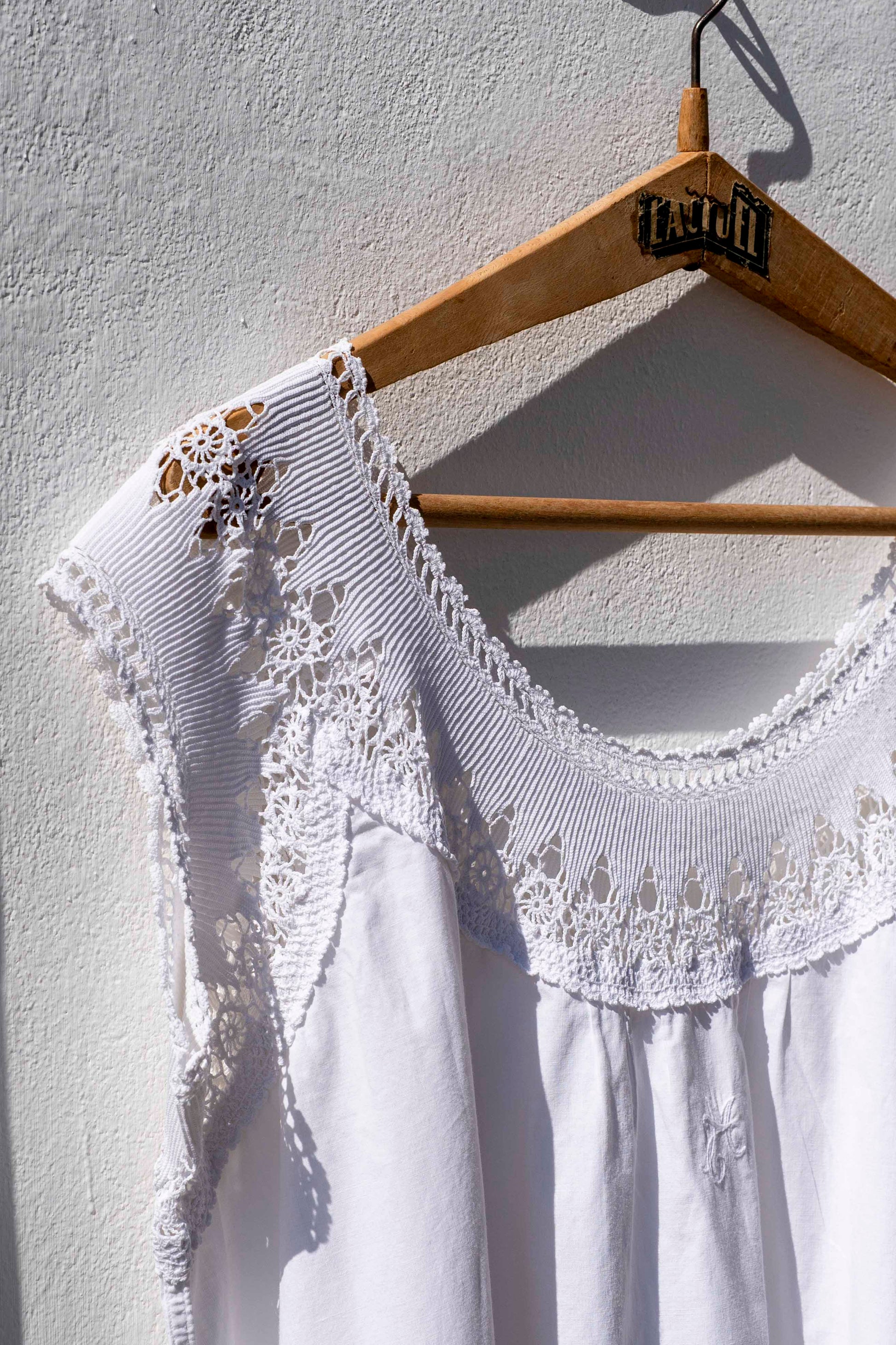 Cotton antique nightdress embellish with sometimes with delicatehand embroidery flowers and always adorned with our emblematic mermaid or crown logo.