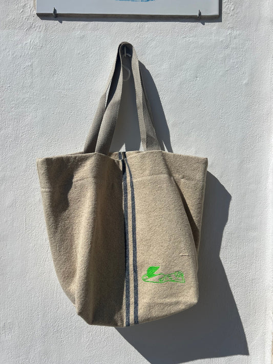 Bag - Big Bag Linen And Perforated Leather