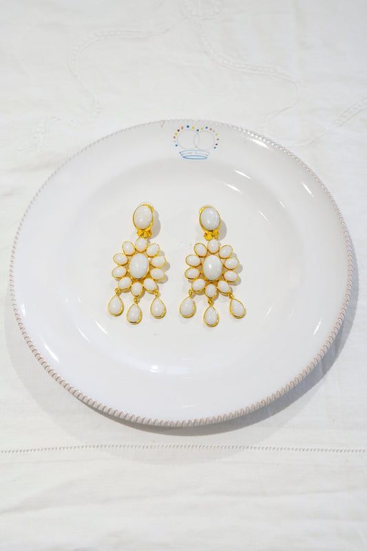 Orecchini - Orecchini a clip con pietra di quarzo bianco Flower Power
