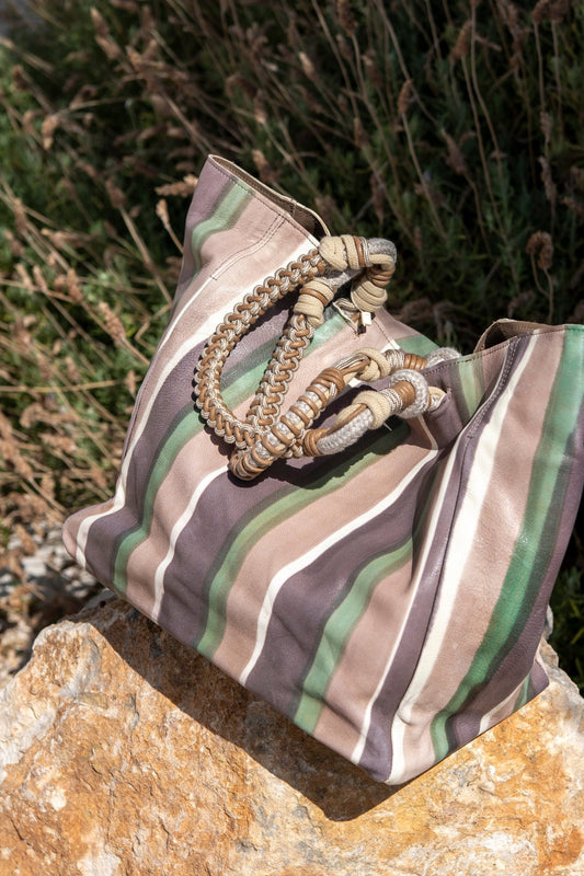 Bag - Medium Bag Leather With Hand Painted Lines