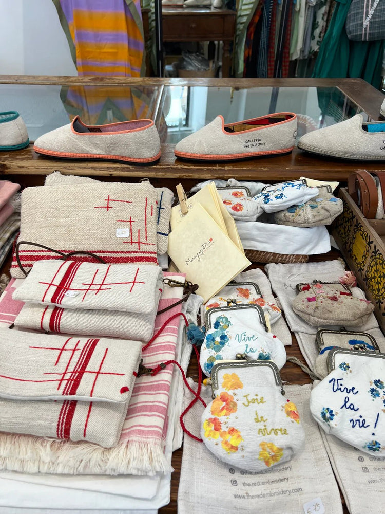 Ogni tessuto è riciclato, selezionato con cura, cucito, ricamato e dipinto da Maria stessa con passione.