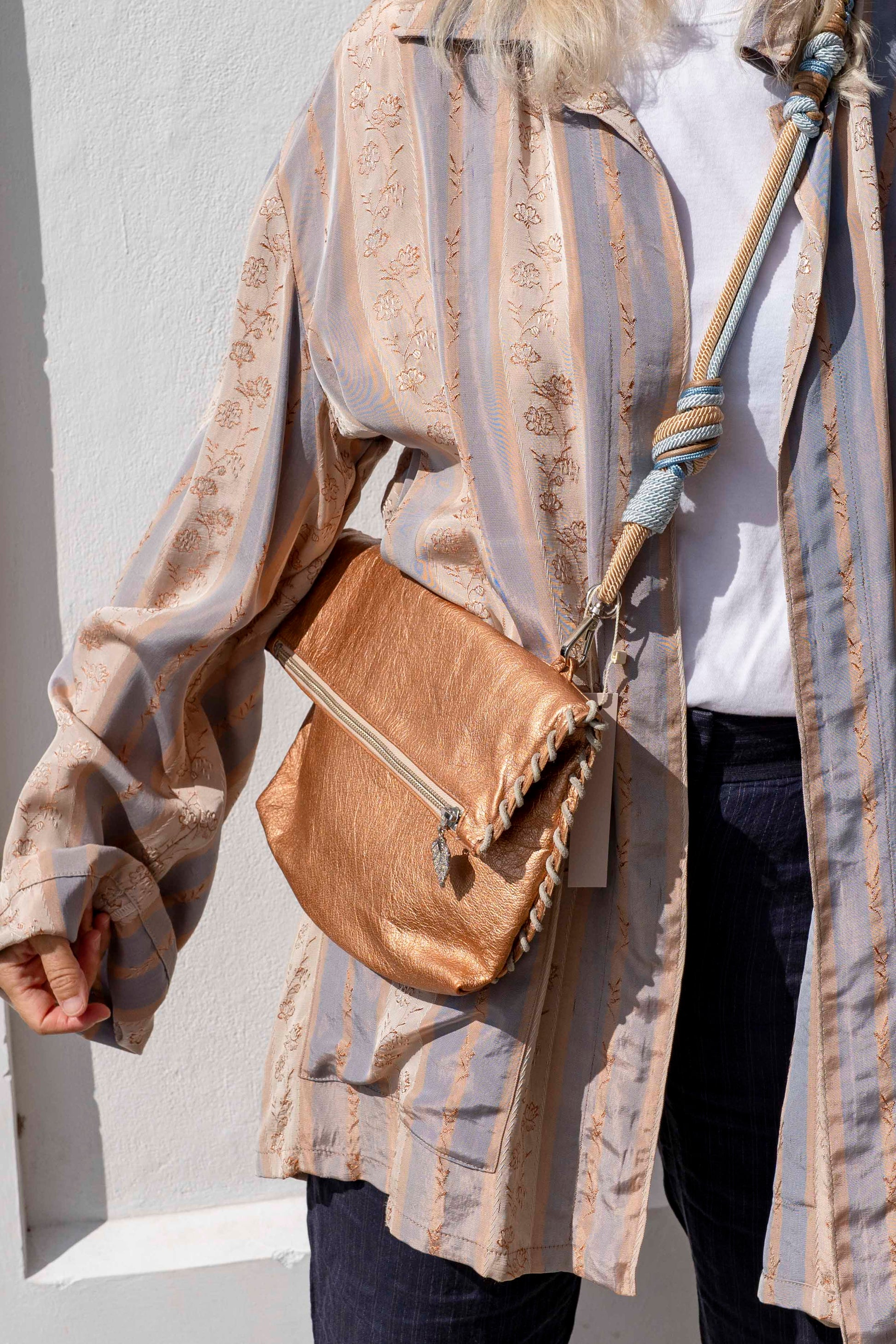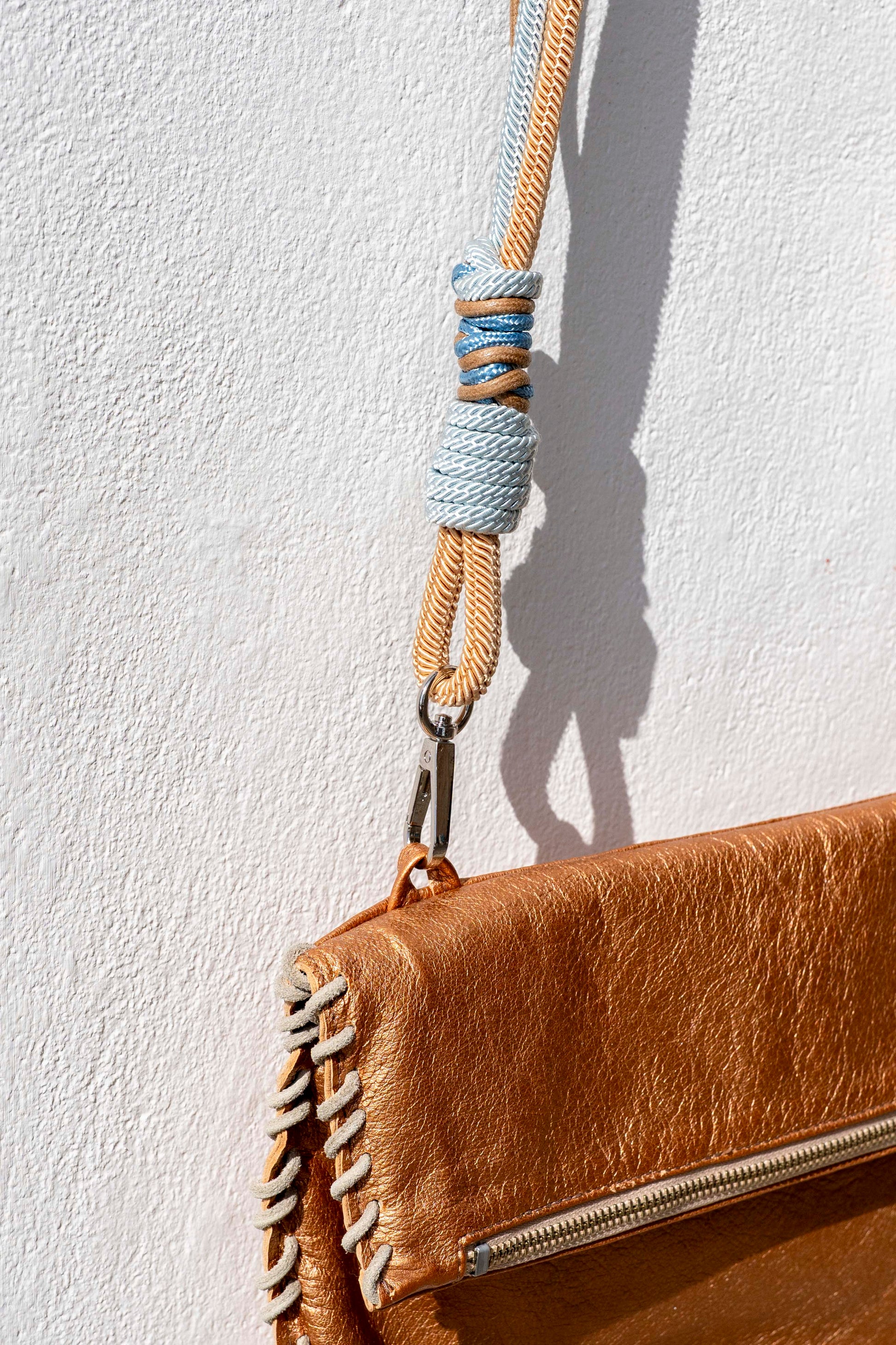 Made with Italian tanneries, this stylish bag is adorned with gorgeous hand-braided rope handle.