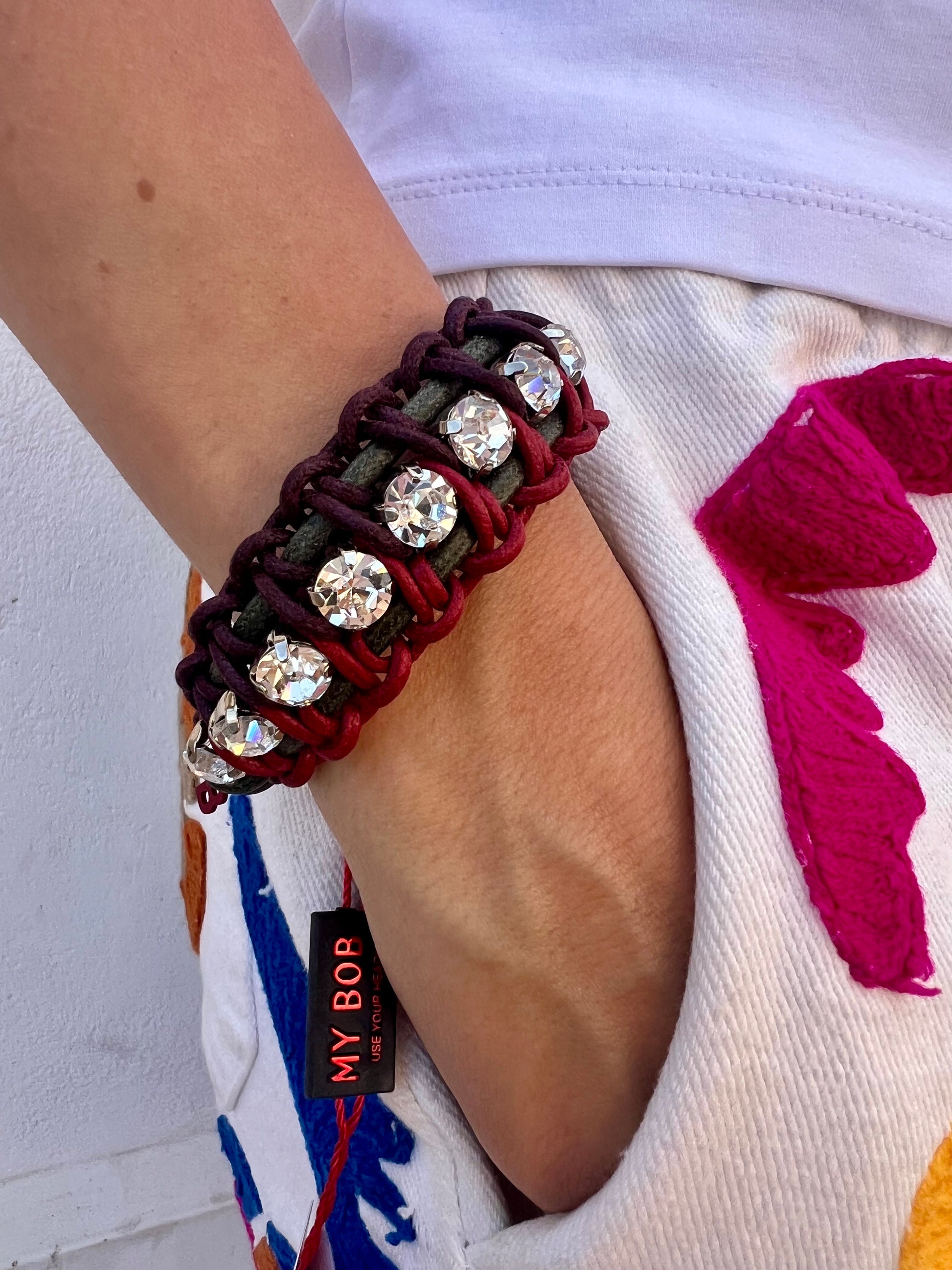 Bracelet - Juliette Bracelet Beige Brown Red Green & Strones