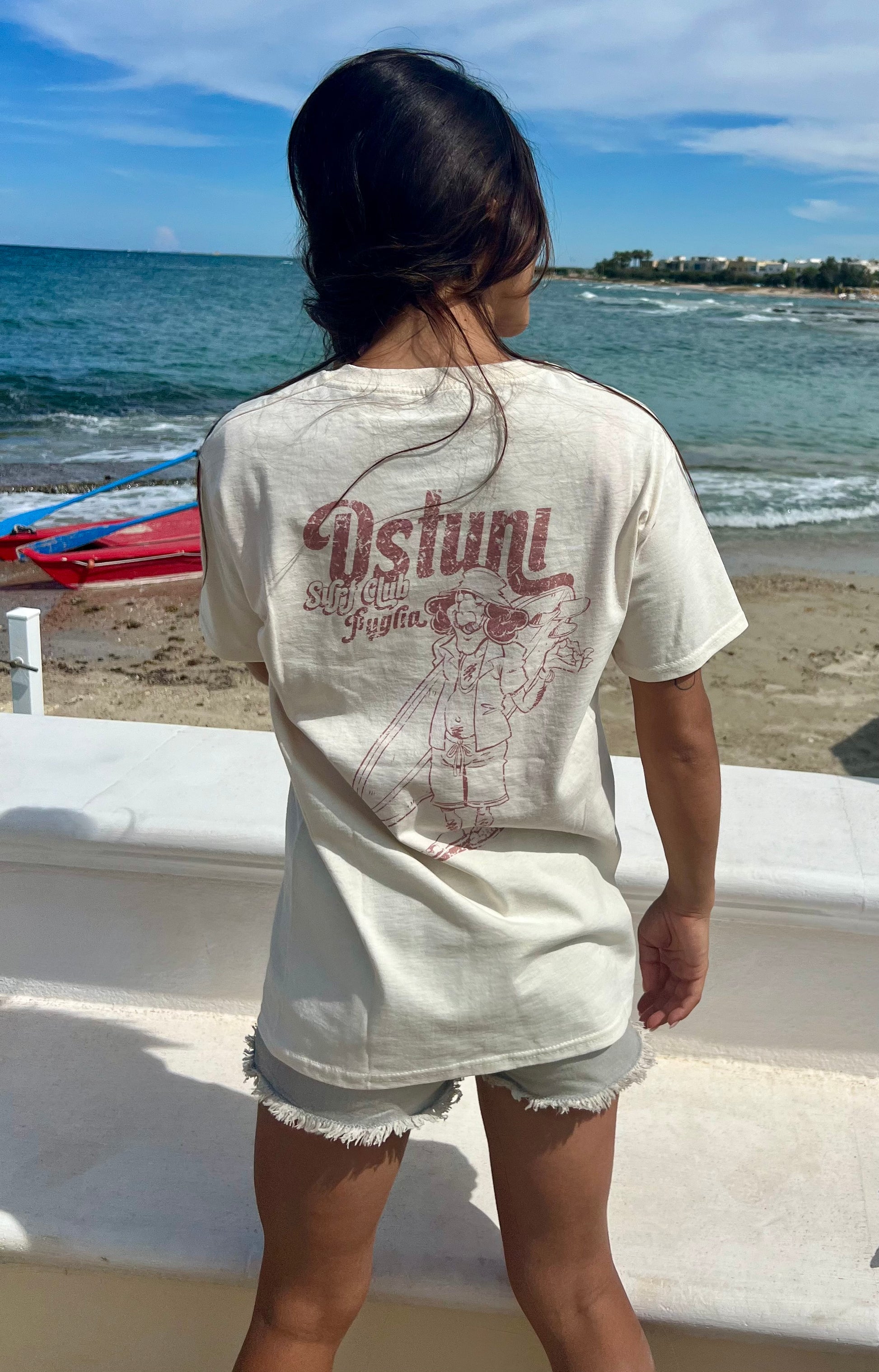 Back: Ostuni Surf Club with a funny drawing of an Italian surfer stylised by our graphic designer Noogaman